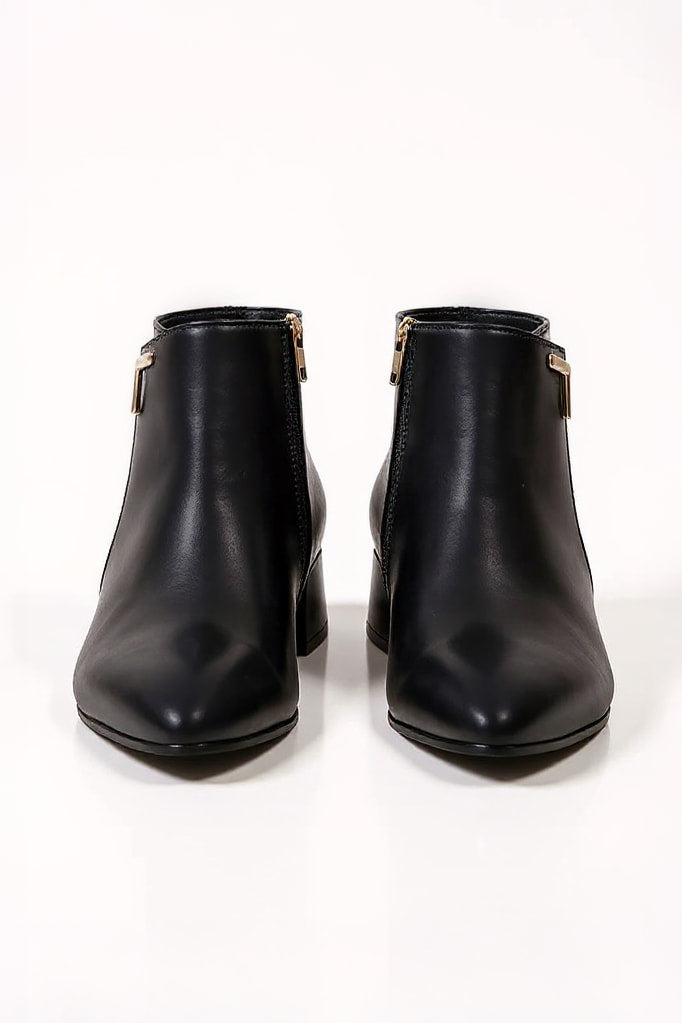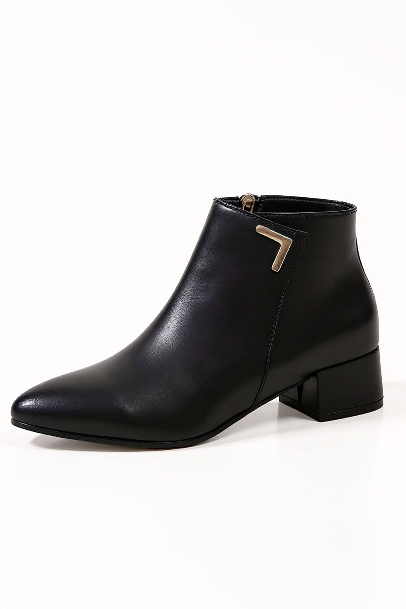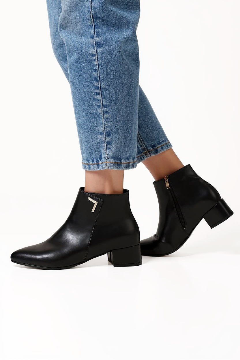 Women's Black Ankle Boots - Pointed Toe Block Heel