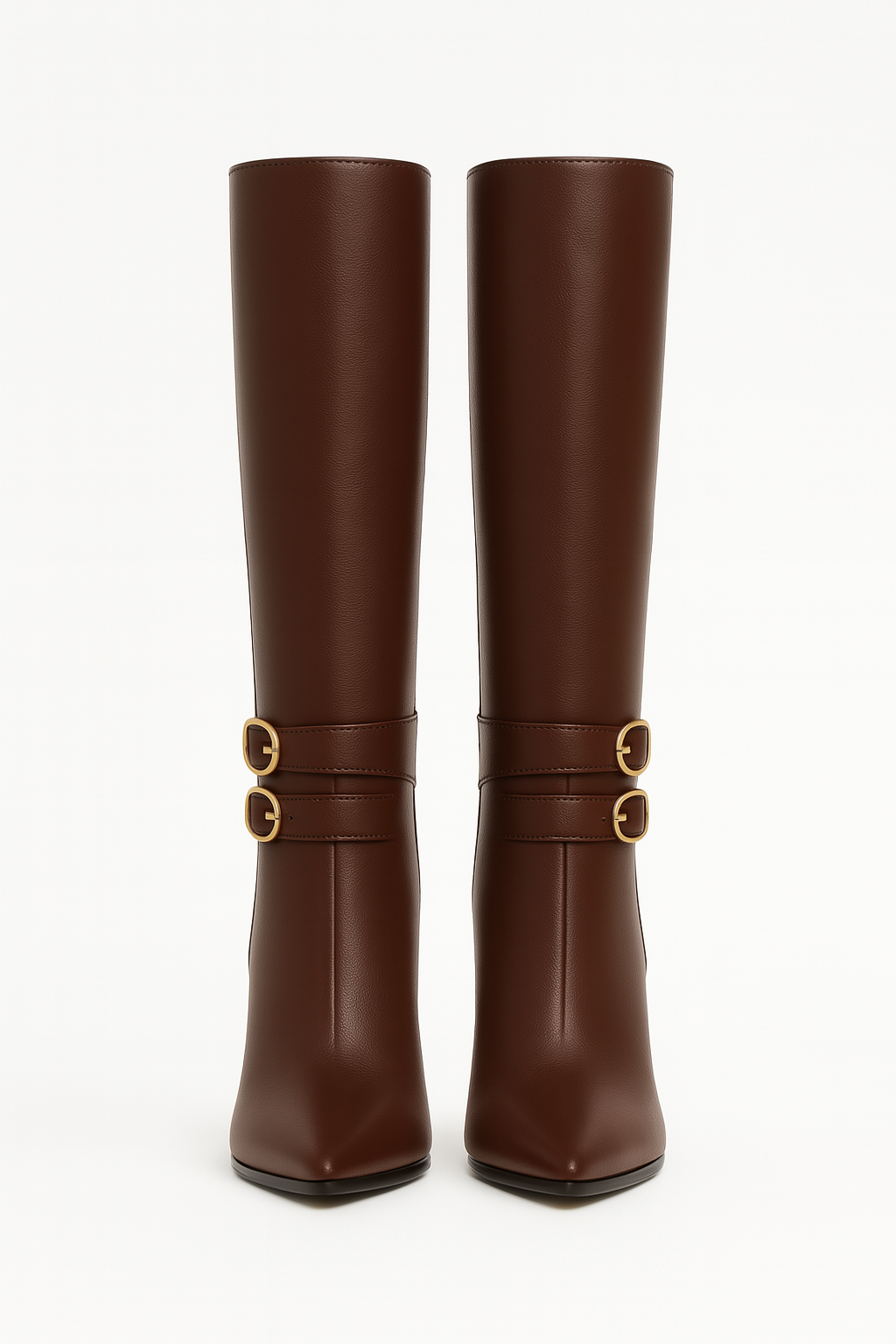 Designed in Paris, crafted for modern elegance. These mid-heel ankle boots by Élodie Doré feature a gold double buckle, refined leather-look finish, and a soft almond toe. Timeless, confident, and feminine.