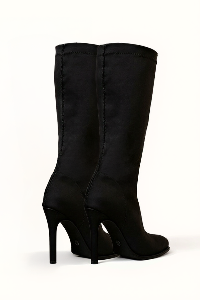 Women's Black Stretchy Mid-Calf Boots - Pointed Toe & Stiletto Heel