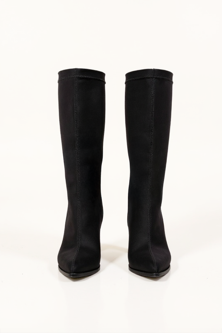 Unveil a look of unparalleled elegance with our Women's Black Stretchy Mid-Calf Boots, designed to be a poetic expression of style. These boots are a testament to refined design, molding to your leg to create a sculpted silhouette that seems to flow with your every movement. The high heel adds a touch of pure sophistication, while the supple, form-fitting upper embraces your foot in a gentle caress. They are not merely an accessory, but a timeless piece that promises to elevate your presence, transforming any occasion into a moment of pure grace.